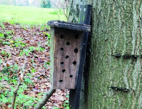 The simplest way is to recycle small logs you might have from tree work on the course. All you need to do is drill lots of different size holes in the log then hang it on a tree. You could do the same on a bigger scale and just stand the log up or lay it down. Another way is to take a simple nestbox design and, instead of putting a front on it, just fill it with cut up bamboo canes.